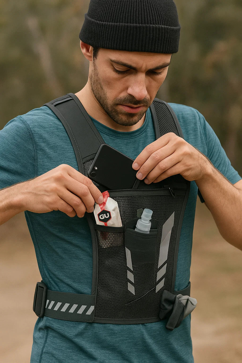 Leve, resistente e pensado para quem corre de verdade. Com compartimentos estratégicos para celular, gel energético e garrafa, você se mantém abastecido e focado no desempenho. Ideal para treinos longos, trilhas e provas.